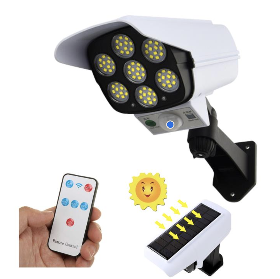 2 en 1. Luz solar y cámara de seguridad maniquí - Mantenga su propiedad segura y mantén los intrusos lejos. Con 77 LEDs brillantes, activado por movimiento, elegante diseño de perfil bajo. Además, cámara de seguridad ficticia realista. Ayuda a Detectar intrusos y los mantiene alejado de su hogar.