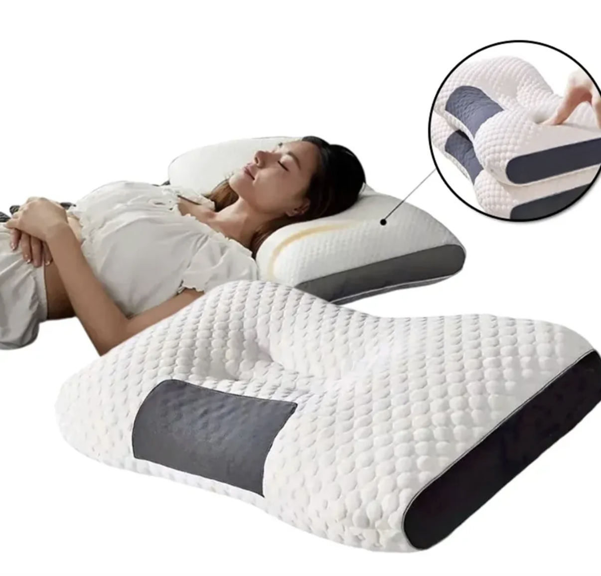 Su diseño es ideal para quienes duermen boca arriba o de lado, ya que mantiene la postura correcta y evita puntos de presión incómodos. Además, incluye una funda suave, transpirable y removible que facilita la limpieza y mejora la ventilación, manteniendo una sensación fresca durante toda la noche.