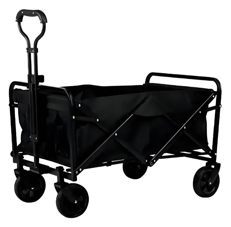 Carrito Para Compras Plegable Ideal Para El Camping en color negro, perfecto para tus aventuras al aire libre. Este carrito es la solución ideal para transportar tus compras de forma cómoda y práctica, ya sea en el supermercado o en el mercado local.