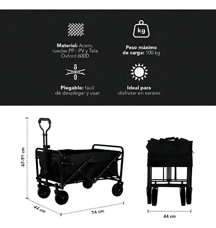 Ya sea que vayas de camping, de picnic o simplemente necesites un carrito para tus compras diarias, el Carrito Para Compras Plegable Ideal Para El Camping en color negro es la elección perfecta.