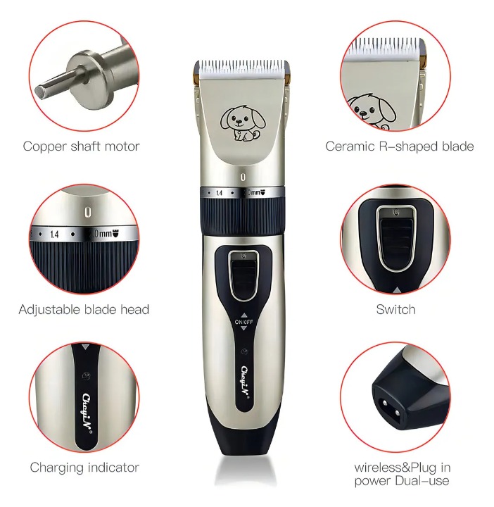 El Kit Profissional es la herramienta ideal para el cuidado de tus mascotas, especialmente diseñada para caballos. Con un diseño ergonómico y un peso ligero de 300 g, su uso es cómodo y práctico, permitiendo un manejo sencillo durante el aseo. Este cortador de pelo cuenta con una potencia de 3 W y es completamente inalámbrico, lo que proporciona libertad de movimiento y evita enredos. Su funcionamiento silencioso asegura que tus animales se sientan tranquilos y relajados durante el proceso de corte. Incluye una variedad de accesorios que facilitan el cuidado integral de tu mascota. Viene con un cepillo limpiador, aceite lubricante, lima, cortauñas, tijera plana, tijera grafiladora, peineta, batería y cable de carga, lo que lo convierte en un aliado completo para el grooming. Los peines de diferentes longitudes (3mm, 6mm, 9mm, 12mm) permiten personalizar el corte según las necesidades de cada animal. Con una cuchilla de alta calidad y un diseño compacto de 17.3 cm de altura, 4.3 cm de ancho y 4.6 cm de largo, este producto es perfecto para quienes buscan un acabado profesional en el cuidado de sus mascotas.