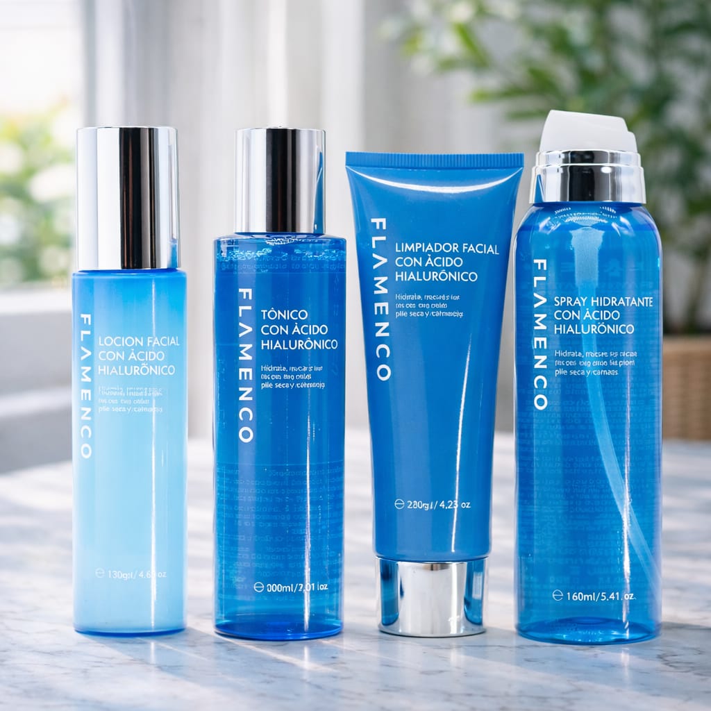 El Kit Facial Flamenco reúne los 4 pasos esenciales para una rutina completa de cuidado facial: limpieza, tonificación, hidratación y frescura. Formulado con ácido hialurónico, ayuda a mantener la piel hidratada, suave y visiblemente saludable.