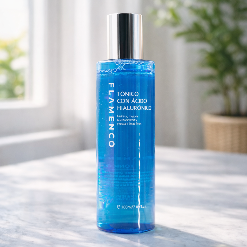 El Tónico Facial Flamenco hidrata, refresca y prepara la piel después de la limpieza. Su fórmula con ácido hialurónico ayuda a mejorar la elasticidad y a reducir la apariencia de líneas finas, dejando la piel equilibrada y revitalizada.