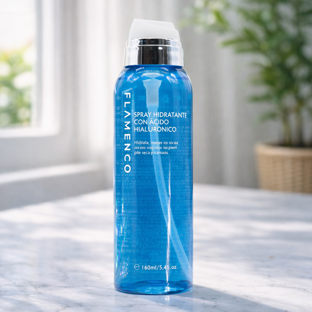 El Spray Hidratante Flamenco refresca y humecta la piel al instante. Ideal para revitalizar el rostro durante el día, ayudando a mantener la piel suave, luminosa y confortable.
