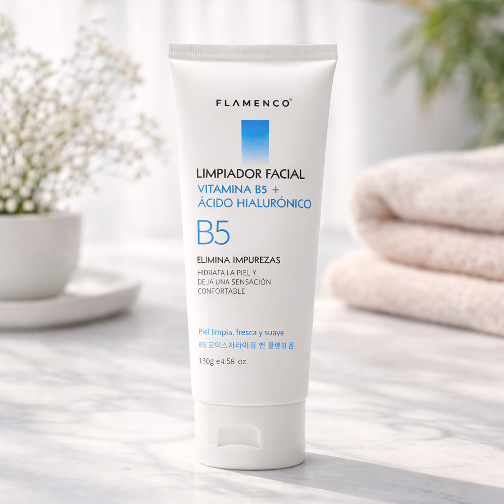 1️⃣ Limpieza: Usar el Limpiador Facial sobre el rostro húmedo y enjuagar.