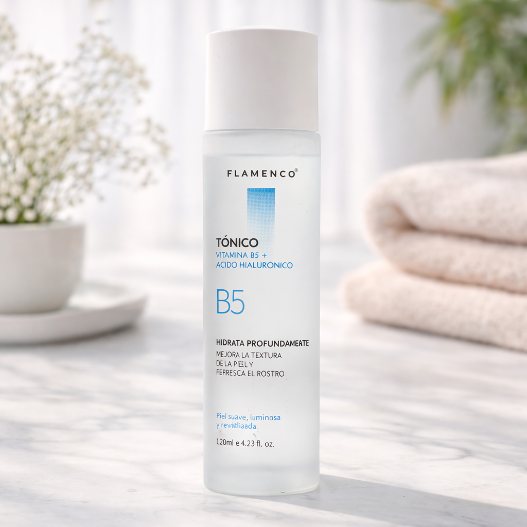 2️⃣ Tonificación: Aplicar el Tónico Facial para hidratar y preparar la piel.