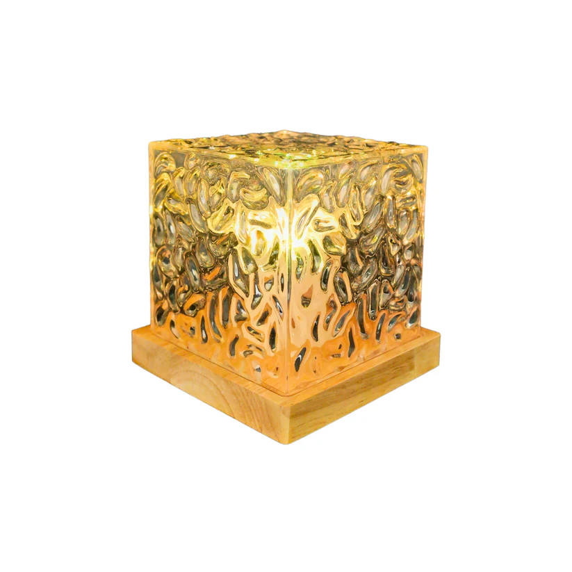 Diseño Elegante: Con su estructura de cubo y pantalla transparente, proyecta figuras que simulan reflejos de agua, creando un efecto visual cautivador.