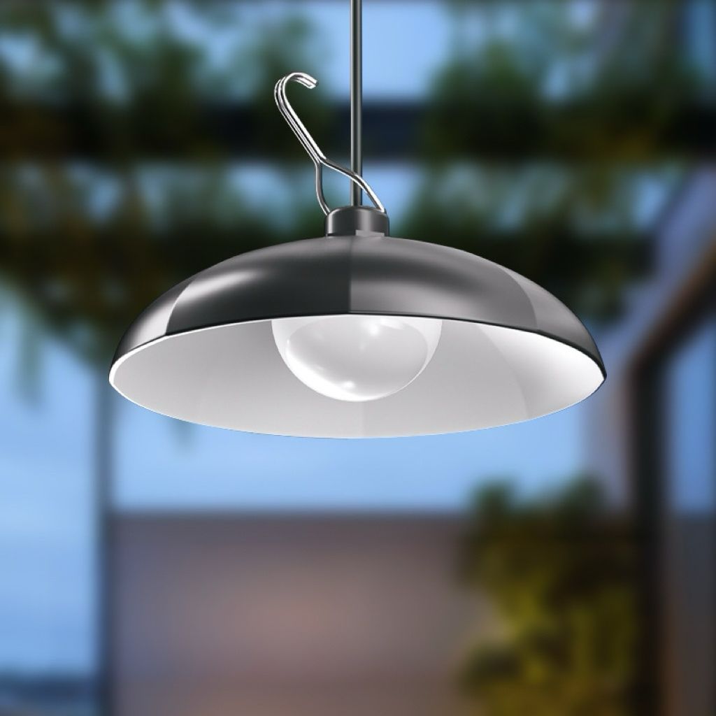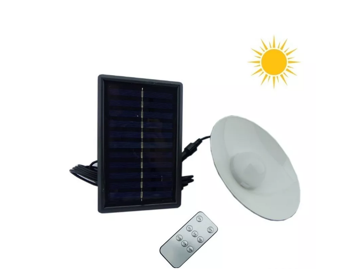 Lámpara LED solar tipo campana, luz blanca, con panel para colgar, ideal para camping, jardín, terraza, etc. Incluye pernos y control remoto.