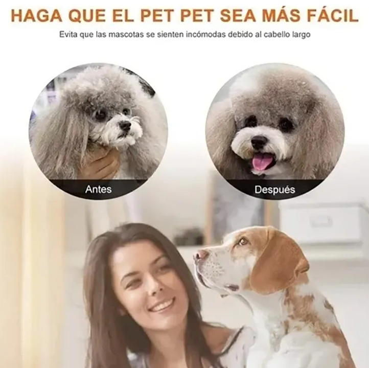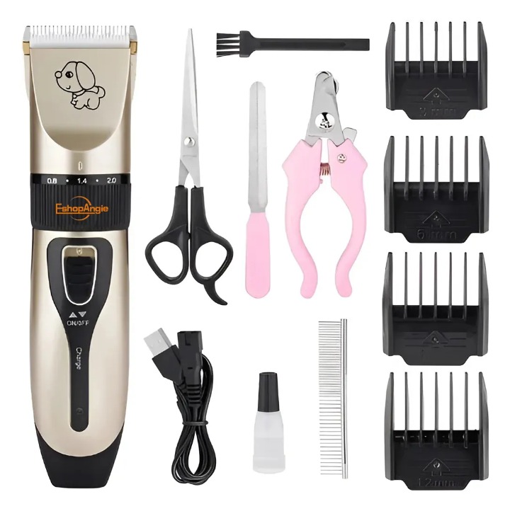 Incluye una variedad de accesorios que facilitan el cuidado integral de tu mascota. Viene con un cepillo limpiador, aceite lubricante, lima, cortauñas, tijera plana, tijera grafiladora, peineta, batería y cable de carga, lo que lo convierte en un aliado completo para el grooming.