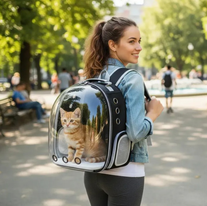 Mochila Bolso Transparente Mascota Negro