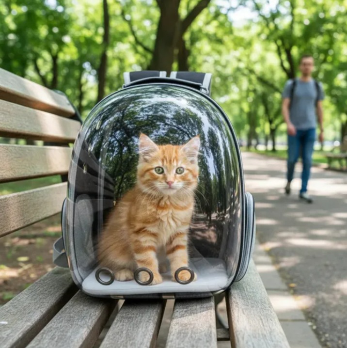 Características del producto: Esta mochila para mascotas está confeccionada con tela Oxford impermeable de color brillante. Cuenta con un diseño de agujero en la parte delantera y los lados, proporcionando una buena permeabilidad al aire. Es ideal para viajes, caminatas y paseos. La cubierta transparente de acrílico permite que la mascota no se sienta incómoda debido a la oscuridad del espacio. El diseño de la correa incluye una hebilla de pecho, lo que hace que el propietario no se sienta incómodo al usarlo durante el viaje. Es un producto de moda y confortable, fusionando PVC y acrílico, materiales respetuosos con el medio ambiente. Además, es de buena calidad, impermeable y resistente a la suciedad.