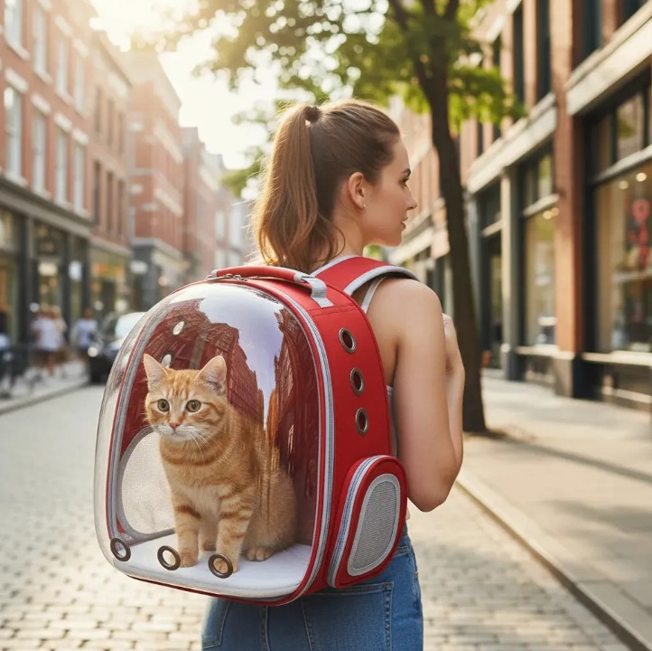 Lleva a tu mascota con total comodidad y seguridad con esta mochila tipo cápsula, ideal para gatos y perros pequeños. Su visor acrílico transparente permite que tu mascota vea el exterior, reduciendo el estrés durante los viajes. Esta mochila es liviana, duradera y cómoda para el transporte diario. Cuenta con orificios de ventilación estratégicamente ubicados y paneles de malla lateral que garantizan una óptima circulación del aire. -Capacidad Máxima: 6 kg -Compatibilidad: Gatos y perros pequeños -Material: Plástico + Poliéster -Ventilación: Orificios frontales + Mallas laterales -Visor: Acrílico transparente tipo cápsula -Base: Desmontable y lavable -Dimensiones: 43 cm (alto) x 32 cm (largo) x 20 cm (ancho) -Uso: Paseos, viajes, transporte urbano, veterinario