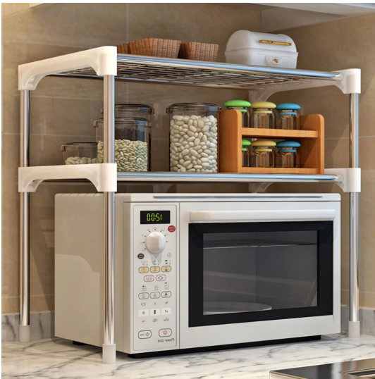 Estate organizador para microondas armable, su estilo simple y elegante, se adapta a cualquier cocina, organizando de manera cómoda y practica tus espacios.Estructura robusta y estable con cestas de estantería de alambre resistentes, arriba se puede utilizar para almacenar platos, vasos y utensilios de cocina.Proporciona espacio extra para los accesorios de cocina.Un práctico estante de almacenamiento para la cocina del hogar. Tipo: estante de almacenaje para Cocina Color: blanco plateado