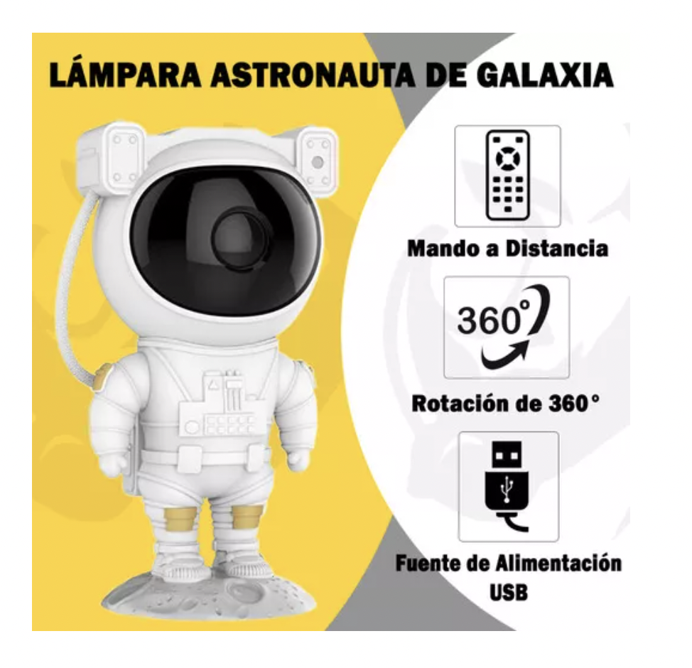 Estimulación creativa y decorativa: El diseño innovador del astronauta y la capacidad de proyección sin restricciones fomentan la creatividad y la imaginación de los niños, convirtiendo la lámpara en un elemento decorativo emocionante y atractivo que puede servir como punto focal en su habitación.