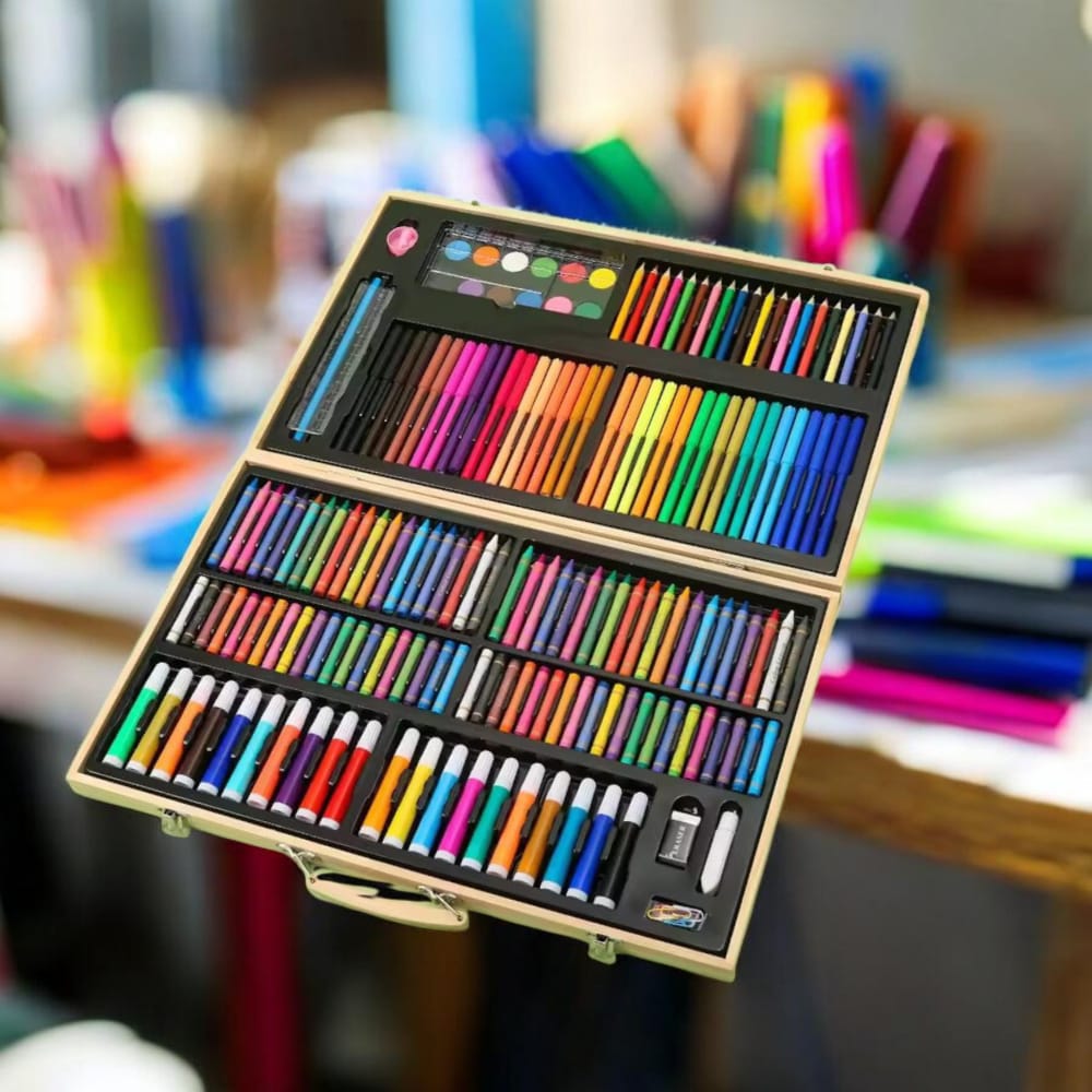 Maleta Madera Set Arte 180 Piezas Lápices Para Colorear
