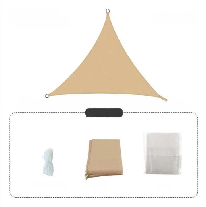 Crea un oasis de frescura y estilo en su espacio exterior con nuestra Vela de Sombra Triangular. Ideal para patio, jardín, terraza, piscina o cualquier área al aire libre, esta vela proporciona una protección solar efectiva y añade un toque moderno y elegante a su hogar. Protección Solar Superior y Confort · Bloqueo Efectivo de Rayos UV: Fabricada con tela Oxford 210 D resistente a la exposición solar, esta vela bloquea eficazmente los dañinos rayos UV, protegiendo su piel y mobiliario exterior. · Diseño Transpirable: El material permite que el aire circule, reduciendo significativamente la temperatura bajo la sombra y proporcionando un ambiente fresco y confortable durante los días calurosos de verano. · Material Duradero: Hecha de material duradero con costuras fuertes y diseñada para resistir las condiciones exteriores. Fácil Instalación y Diseño Elegante · Instalación Rápida: La instalación es sencilla y no requiere herramientas complejas. Simplemente fije los anillos de acero inoxidable a sus puntos de montaje (casas, árboles, columnas de patio) usando las cuerdas de 2 m incluidas. · Alta Estética: Su forma triangular y diseño elegante permite instalar varias velas superpuestas para cubrir áreas más grandes o crear patrones decorativos y modernos. · Accesorios Premium: Los anillos de acero inoxidable garantizan un enlace rápido, fácil y seguro a los puntos de anclaje, maximizando la tensión de la vela. Portabilidad y Especificaciones · Gran Área de Cobertura: La vela tiene una medida generosa de 300 x 300 x 300 cm (3 x 3 m por lado). · Ultraligera y Compacta: Pesa solo 0.59 kg y se empaca de forma muy compacta (22 x 18 x 3 cm), facilitando su almacenamiento fuera de temporada. El Paquete Incluye: · 1 Vela de Sombra Triangular (3x3m) · 4 Cuerdas de 2 m (para su instalación) Especificaciones del Producto: · Forma: Triangular. · Medida: 300 x 300 x 300 cm. · Material: Tela Oxford 210D (Anti-UV y Transpirable). · Accesorios: Anillos de Acero Inoxidable. · Peso Neto: 0.59 kg. · Usos: Patio, Jardín, Terraza, Parque.
